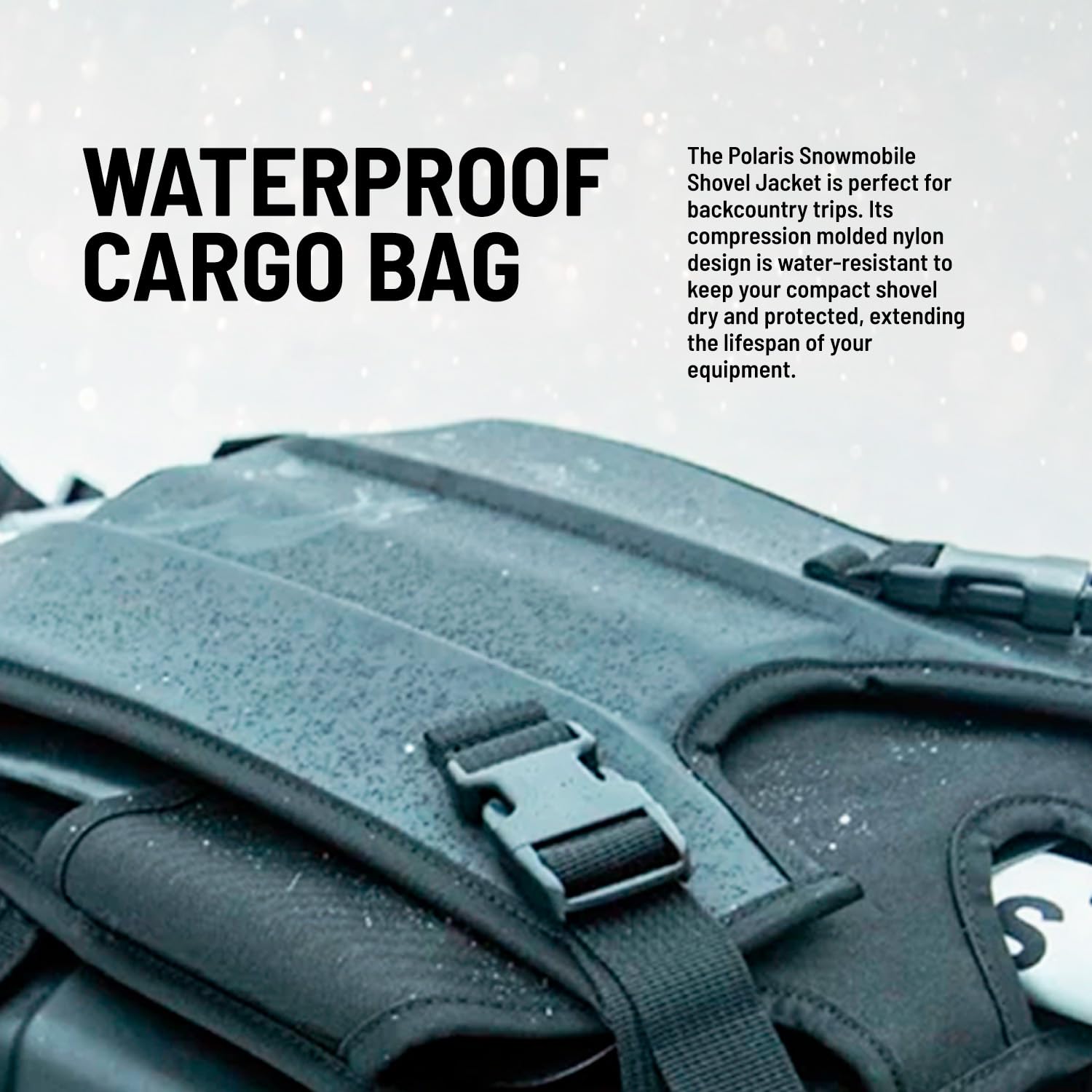 Keep your snow shovel safe and dry with the Polaris Snowmobile Shovel Jacket. Designed for backcountry adventures, this compact, waterproof cargo bag attaches directly to the Polaris Lock & Ride Flex Burandt Bag, giving you easy access to a secondary collapsible shovel while keeping your gear secure.